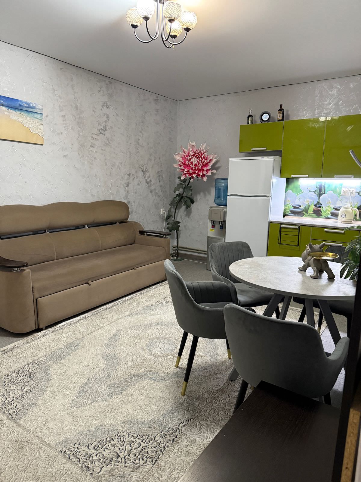 2 осн. места. 2 доп. места. Балкон: с мебелью, терраса. Мебель: вешалка, диван, зеркало, кровать двуспальная, прикроватные тумбочки, стол, стулья, шкаф. Мини-кухня. Оборудование: микроволновая печь, набор посуды, плита электрическая, сплит-система, стиральная машина, телевизор, холодильник, электрочайник. Санузел: с ванной, туалетные принадлежности. Сервис: Wi-Fi бесплатно, смена полотенец, смена постельного белья, уборка номера.